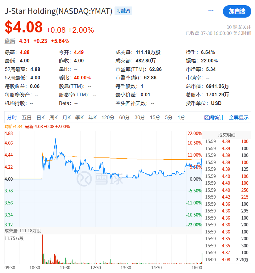 截至2025年8月15日,近两周共有三家中概股登陆纳斯达克,分别是碳钎维制造商J-Star Holding(YMAT.O)、游戏开发商黑瞳科技(DKI.O)、活动方案提供商BUUU Group(BUUU.O)。 2025年7月30日,来自中国台湾的碳纤维复合材料制造商J-Star Holding Co., Ltd登陆纳斯达克,每股发行价4美元,募资资金500万美元。 J-Star 是一家碳纤维和复合材料解决方案提供商,从事商业化碳增强和树脂系统技术开发。 2025年8月8日,游戏开发商黑瞳科技成功在纳斯达克上市,每股发行价4美元,募资总额600万美元。 黑瞳科技是一家通过各种第三方数字商店开发、发行和运营移动数字游戏的综合性科技企业。 2025年8月14日,总部位于香港的BUUU Group登录纳斯达克,每股发行价4美元,募集资金600万美元。 BUUU Group是一家位于香港的知名会议、奖励旅游、大型会议和展览解决方案提供商,为客户提供从创意设计、项目管理到舞台制作的一站式解决方案。 |