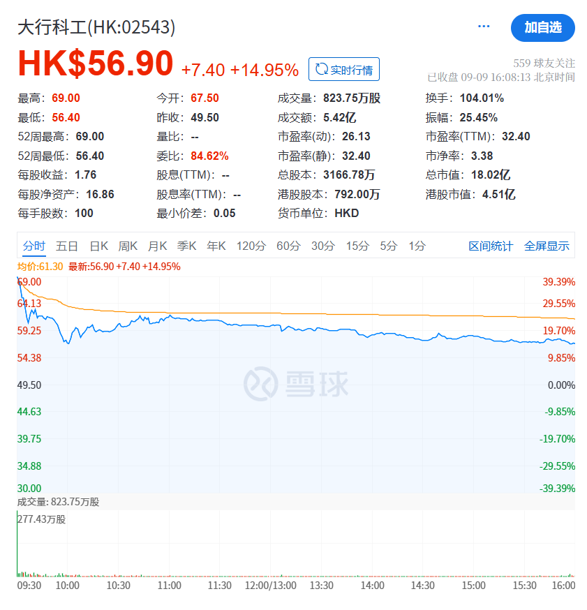 截至2025年9月12日,本周共有两家企业于香港联合交易所主板挂牌上市,分别是电气品牌商奥克斯电气(02580.HK)、自行车制造商大行科工(02543.HK)。 2025年9月2日,奥克斯电气有限公司正式于香港联合交易所主板挂牌上市,每股定价17.42港元,共发行2.38亿股股份,公开发售阶段获557.2倍认购。截至首日收盘,奥克斯市值约261.74亿港元。 奥克斯电气有限公司是一家主要从事家用和中央空调设计、研发、生产、销售及服务的投资控股公司。 2025年9月9日,大行科工(深圳)股份有限公司成功在香港联合交易所主板挂牌上市,每股定价49.5港元,公开发售阶段获7558.4倍认购。 大行科工是一家全球领先,且快速扩展的折叠自行车公司,在全球及中国内地折叠自行车行业销量排行第一。 |