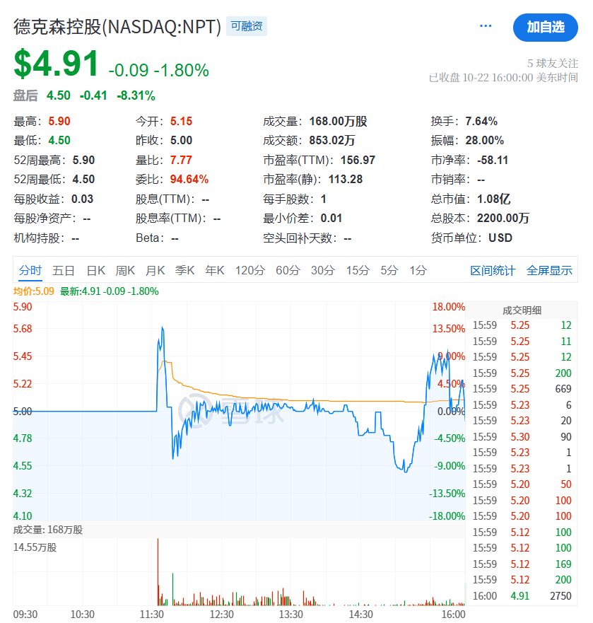 2025年10月22日, 网塑科技登陆美国纳斯达克交易所,每股发行价5美元,募集资金950万美元。