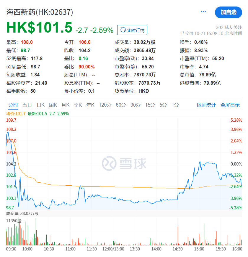 2025年10月20日, 海西新药于香港联合交易所主板挂牌上市,每股定价86.40港元,共发行1150万股股份,公开发售阶段获3165.1倍认购。