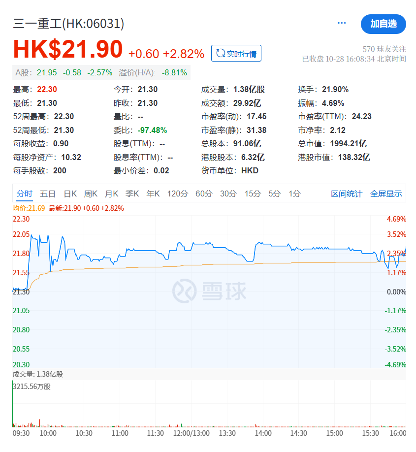 截至2025年10月31日,本周共有四家企业于香港联合交易所主板挂牌上市,分别是八马茶业(06980.HK)、剑桥科技(06166.HK)、三一重工(06031.HK)、滴普科技(01384.HK)。 其中三一重工和剑桥科技皆为“A+H”上市企业。 2025年10月28日,全球第三大、中国最大的工程机械企业三一重工(600031.SH)成功于香港联合交易所主板挂牌上市。每股定价21.30港元,共发行6.32亿股股份。此前三一重工于2003年在A股上市。