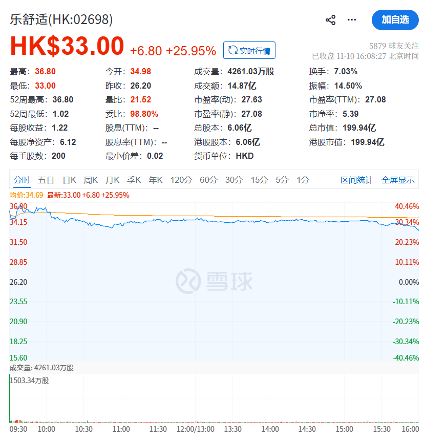 2025年11月10日,乐舒适成功于香港联合交易所主板挂牌上市,每股定价26.20港元,共发行9088.40万股股份,公开发售阶段获超1813倍认购。