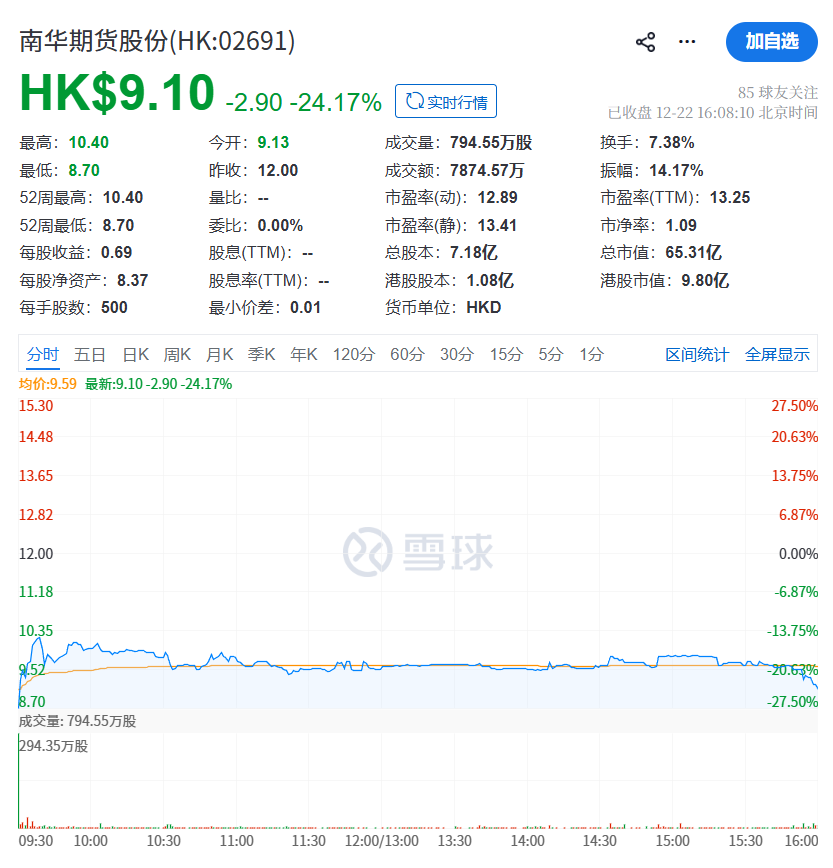 截至2025年12月26日,本周共有七家企业于香港联合交易所主板挂牌上市,分别是华芢生物-B(02396.HK)、明基医院(02581.HK)、南华期货股份(02691.HK)、印象大红袍(02695.HK)、诺比侃(02635.HK)、轻松健康(02661.HK)、翰思艾泰-B(03378.HK)。 其中南华期货股份为“A+H”上市企业。 2025年12月22日,南华期货(603093.SH)成功于香港联合交易所主板挂牌上市,每股定价12港元,共发行1.08亿股股份。